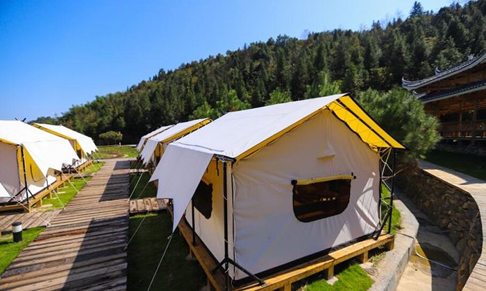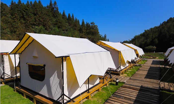 3、天幕小屋組合式金屬構件、牢固安全、拆裝方便。