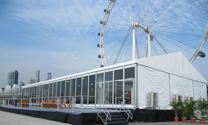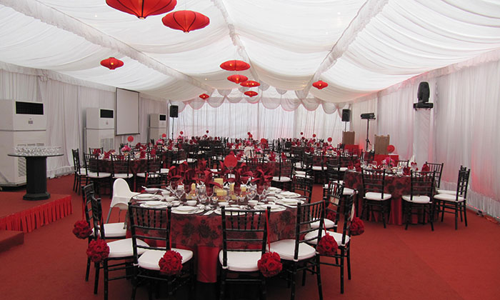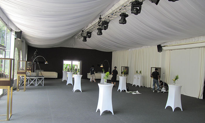我司嚴(yán)格執(zhí)行ISO9001的質(zhì)量管理體系,確保不良產(chǎn)品的最小化及客戶滿意度的最大化。我們的的主要產(chǎn)品包括可移動(dòng)的模塊化鋁合金支架篷房,有不同風(fēng)格的篷房及裝飾可供選擇,篷房跨度從3米到60米。此外,還包括錐頂篷房和吊頂篷房,以及篷房配件,如照明燈具、地板、空調(diào)、桌椅及其它用于篷房?jī)?nèi)部的家具。篷房可廣泛應(yīng)用于大小型活動(dòng)、婚慶、展會(huì)、體育、酒店、航空和工業(yè)等其它領(lǐng)域。篷房框架結(jié)構(gòu)為高強(qiáng)度鋁合金6061/T6型材,篷布為防水、阻燃的雙面PVC涂層聚酯纖維布,主體結(jié)構(gòu)風(fēng)載荷不少于100Km/h。