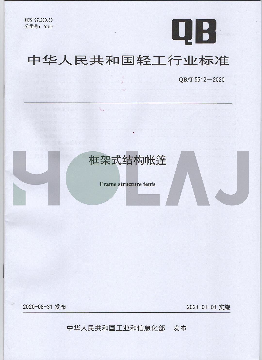 行業專家表示,QB/T 5512-2020《框架式結構帳篷》國家標準的正式發行,將對框架式結構帳篷的術語和定義、產品分類和型號命名、設計要求、技術要求、試驗方法、檢驗規則及標志、包裝、運輸、貯存、研制和使用等各方面都具有積極意義,為行業技術進步和發展提供了重要保障。