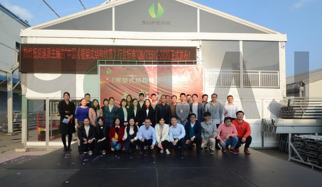 速派憑借在篷房領域卓越的研發創新實力,組織公司專家參加框架式結構篷房的標準編寫工作,并最終完成《框架式結構帳篷標準》的編寫、審批。