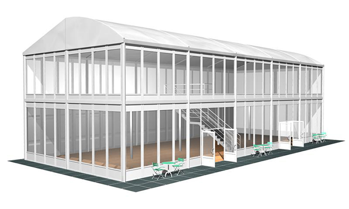 雙層篷房也叫兩層篷房。在同一地面面積內提供雙層活動空間,大空間,二層視野更佳,特色豪華時尚。還可以為客戶創造更好的視覺空間。無論是在節日慶典、會議和體育活動中使用,如足球、高爾夫、網球、馬術、賽馬或任何其他類型的賽事。