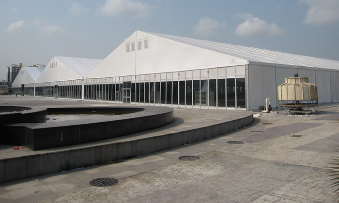 大型展館篷房,可以根據客戶需求將不同寬度的篷房跨度,從而達到理想的預設空間。