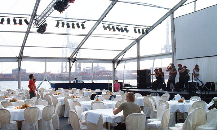 我司嚴格執(zhí)行ISO9001的質(zhì)量管理體系,確保不良產(chǎn)品的最小化及客戶滿意度的最大化。我們的的主要產(chǎn)品包括可移動的模塊化鋁合金支架篷房,有不同風格的篷房及裝飾可供選擇,篷房跨度從3米到60米。此外,還包括錐頂篷房和吊頂篷房,以及篷房配件,如照明燈具、地板、空調(diào)、桌椅及其它用于篷房內(nèi)部的家具。篷房可廣泛應用于大小型活動、婚慶、展會、體育、酒店、航空和工業(yè)等其它領(lǐng)域。篷房框架結(jié)構(gòu)為高強度鋁合金6061/T6型材,篷布為防水、阻燃的雙面PVC涂層聚酯纖維布,主體結(jié)構(gòu)風載荷不少于100Km/h。