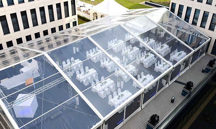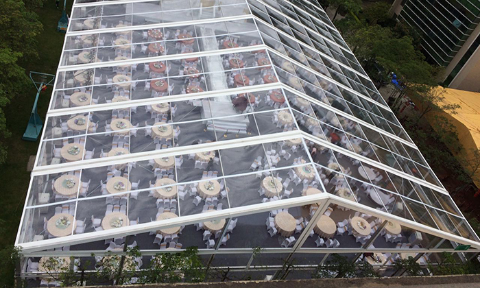 我司嚴(yán)格執(zhí)行ISO9001的質(zhì)量管理體系,確保不良產(chǎn)品的最小化及客戶滿意度的最大化。我們的的主要產(chǎn)品包括可移動(dòng)的模塊化鋁合金支架篷房,有不同風(fēng)格的篷房及裝飾可供選擇,篷房跨度從3米到60米。此外,還包括錐頂篷房和吊頂篷房,以及篷房配件,如照明燈具、地板、空調(diào)、桌椅及其它用于篷房內(nèi)部的家具。篷房可廣泛應(yīng)用于大小型活動(dòng)、婚慶、展會(huì)、體育、酒店、航空和工業(yè)等其它領(lǐng)域。篷房框架結(jié)構(gòu)為高強(qiáng)度鋁合金6061/T6型材,篷布為防水、阻燃的雙面PVC涂層聚酯纖維布,主體結(jié)構(gòu)風(fēng)載荷不少于100Km/h。
