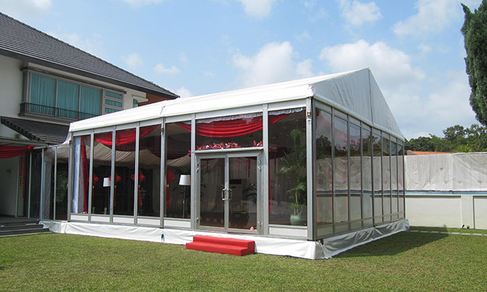 我司嚴格執(zhí)行ISO9001的質量管理體系,確保不良產(chǎn)品的最小化及客戶滿意度的最大化。我們的的主要產(chǎn)品包括可移動的模塊化鋁合金支架篷房,有不同風格的篷房及裝飾可供選擇,篷房跨度從3米到60米。此外,還包括錐頂篷房和吊頂篷房,以及篷房配件,如照明燈具、地板、空調、桌椅及其它用于篷房內部的家具。篷房可廣泛應用于大小型活動、婚慶、展會、體育、酒店、航空和工業(yè)等其它領域。篷房框架結構為高強度鋁合金6061/T6型材,篷布為防水、阻燃的雙面PVC涂層聚酯纖維布,主體結構風載荷不少于100Km/h。