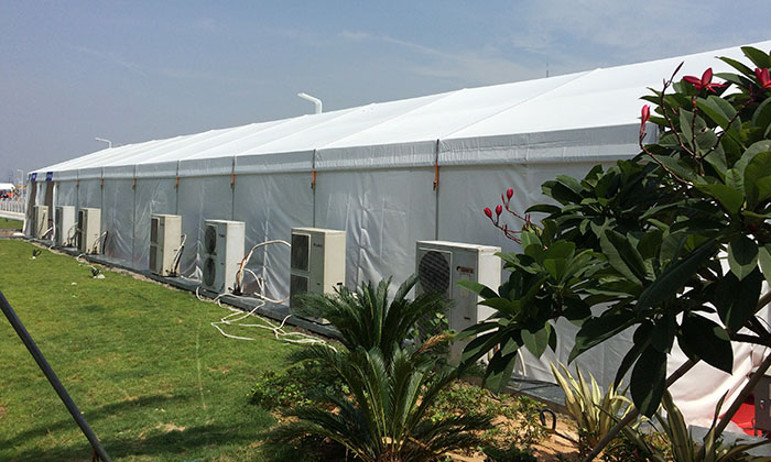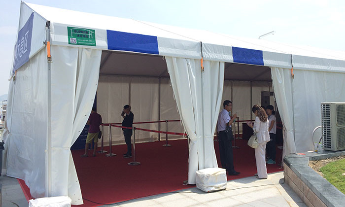 我司嚴(yán)格執(zhí)行ISO9001的質(zhì)量管理體系,確保不良產(chǎn)品的最小化及客戶(hù)滿(mǎn)意度的最大化。我們的的主要產(chǎn)品包括可移動(dòng)的模塊化鋁合金支架篷房,有不同風(fēng)格的篷房及裝飾可供選擇,篷房跨度從3米到60米。此外,還包括錐頂篷房和吊頂篷房,以及篷房配件,如照明燈具、地板、空調(diào)、桌椅及其它用于篷房?jī)?nèi)部的家具。篷房可廣泛應(yīng)用于大小型活動(dòng)、婚慶、展會(huì)、體育、酒店、航空和工業(yè)等其它領(lǐng)域。篷房框架結(jié)構(gòu)為高強(qiáng)度鋁合金6061/T6型材,篷布為防水、阻燃的雙面PVC涂層聚酯纖維布,主體結(jié)構(gòu)風(fēng)載荷不少于100Km/h。