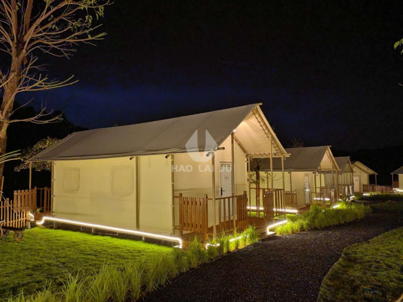 3、天幕小屋組合式金屬構(gòu)件、牢固安全、拆裝方便。