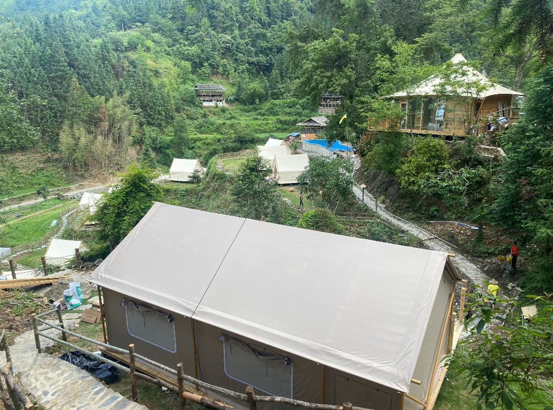 花都里·化屋度假營地位于烏江源百里畫廊化屋景區(qū),營地有野奢帳篷22個,輕奢帳篷19個。