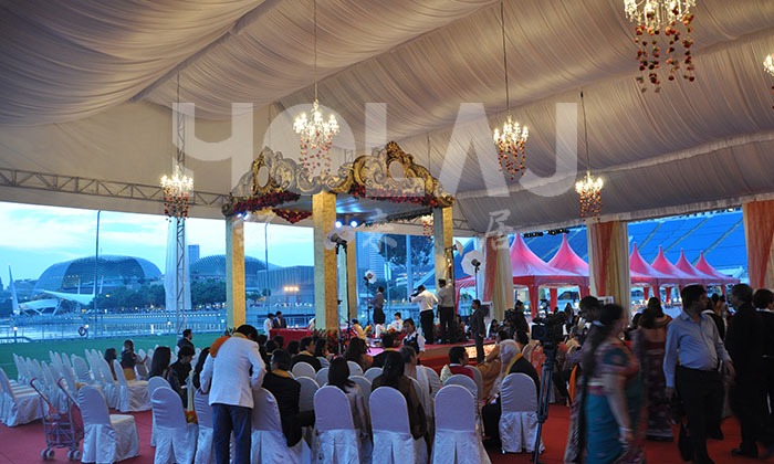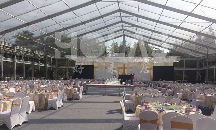 我司嚴格執行ISO9001的質量管理體系,確保不良產品的最小化及客戶滿意度的最大化。我們的的主要產品包括可移動的模塊化鋁合金支架篷房,有不同風格的篷房及裝飾可供選擇,篷房跨度從3米到60米。此外,還包括錐頂篷房和吊頂篷房,以及篷房配件,如照明燈具、地板、空調、桌椅及其它用于篷房內部的家具。篷房可廣泛應用于大小型活動、婚慶、展會、體育、酒店、航空和工業等其它領域。篷房框架結構為高強度鋁合金6061/T6型材,篷布為防水、阻燃的雙面PVC涂層聚酯纖維布,主體結構風載荷不少于100Km/h。